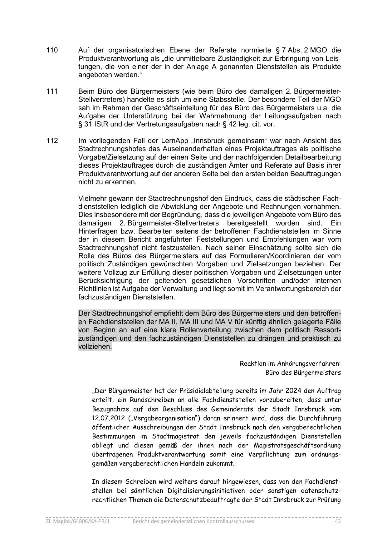„Der Bürgermeister hat der Präsidialabteilung bereits im Jahr 2024 den Auftrag
