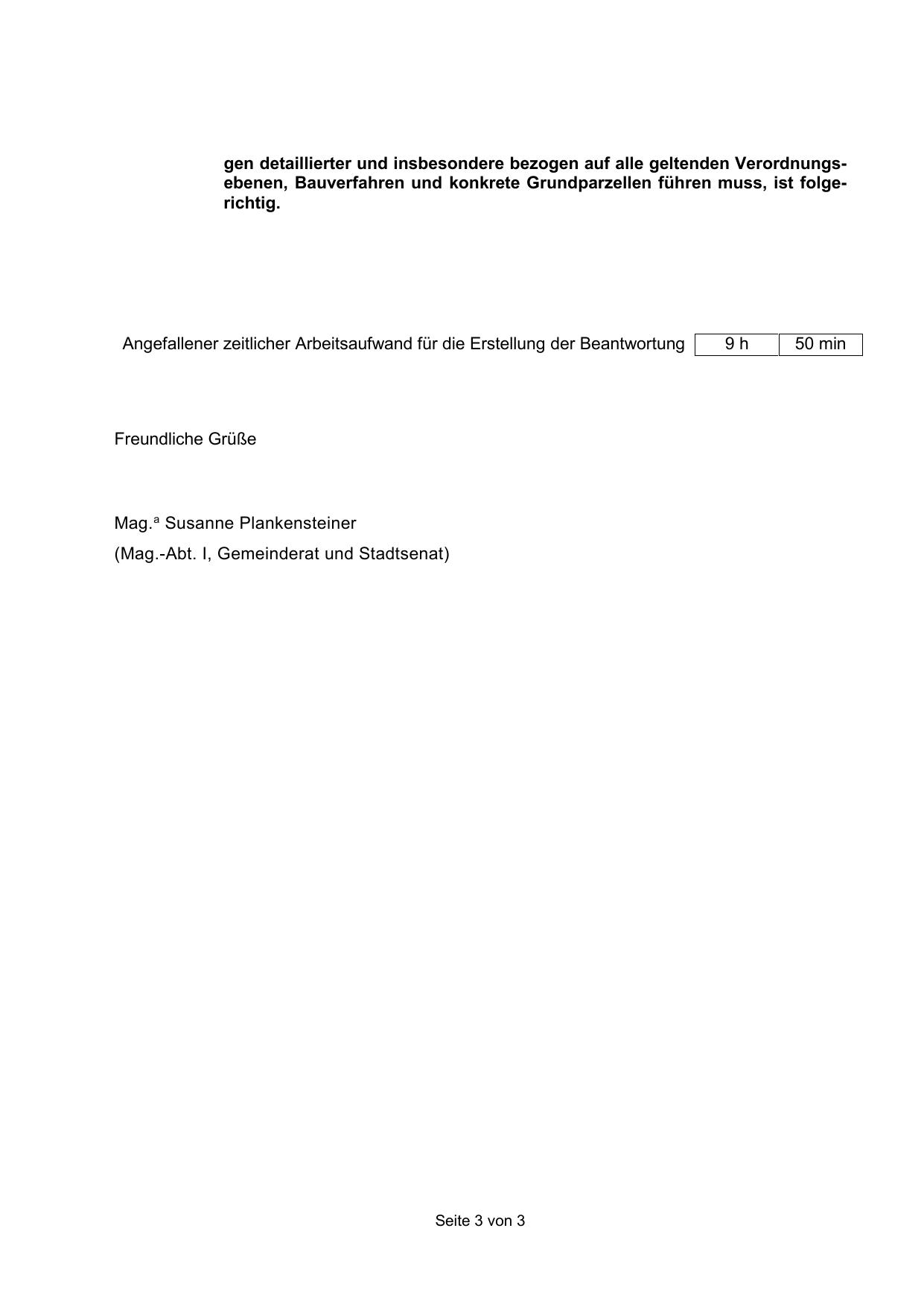 Angefallener zeitlicher Arbeitsaufwand für die Erstellung der Beantwortung
