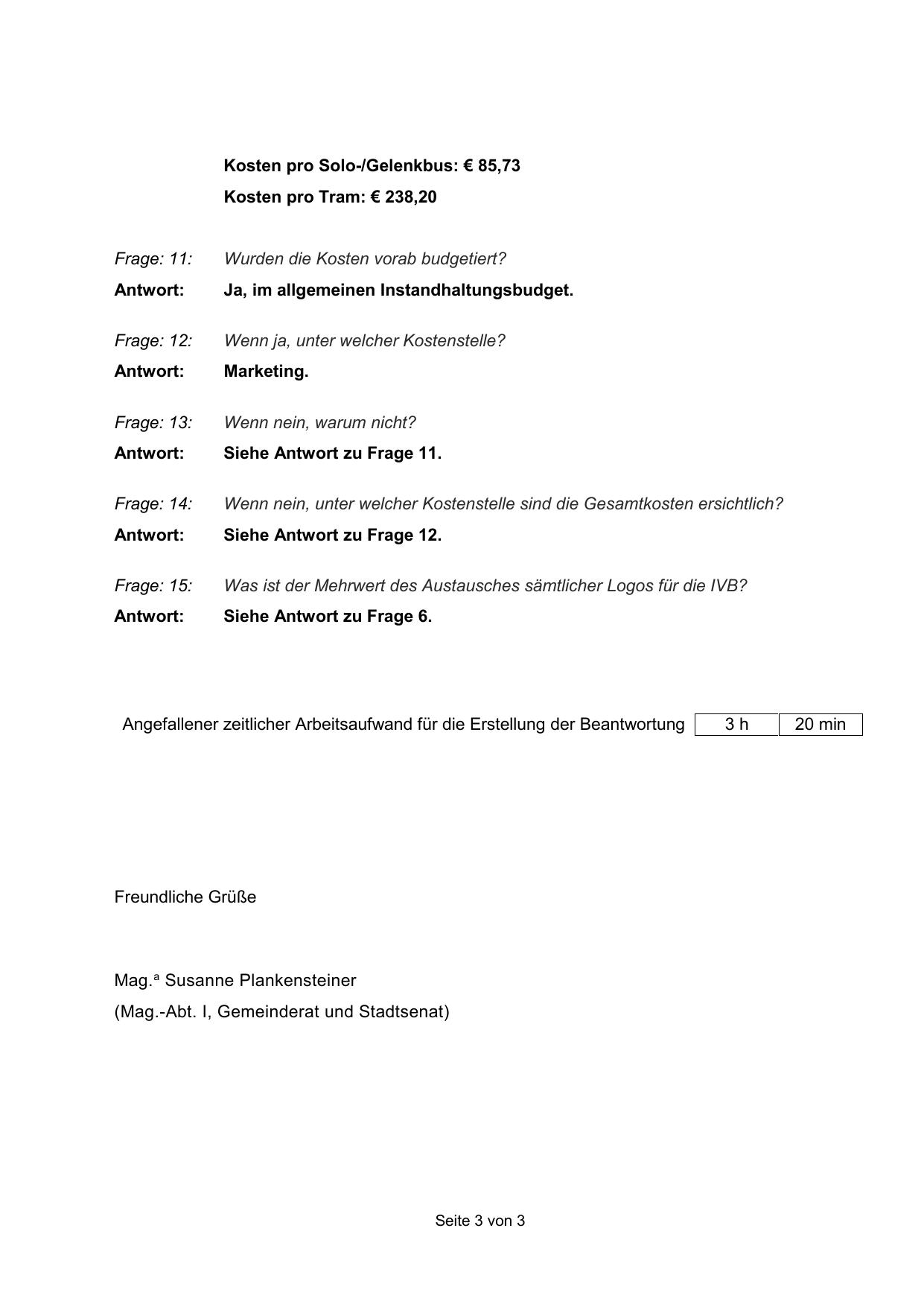 Angefallener zeitlicher Arbeitsaufwand für die Erstellung der Beantwortung