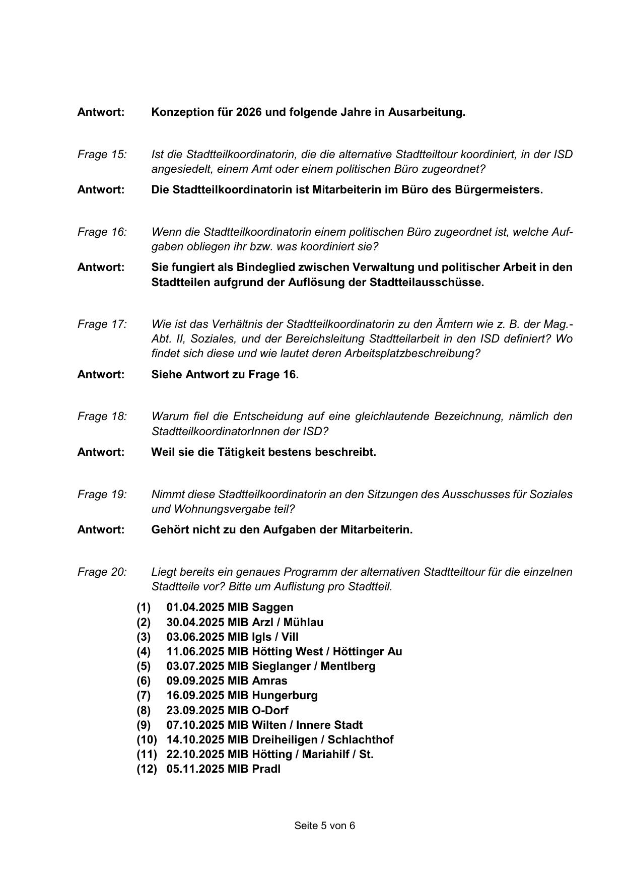 Stadtteile vor? Bitte um Auflistung pro Stadtteil.
