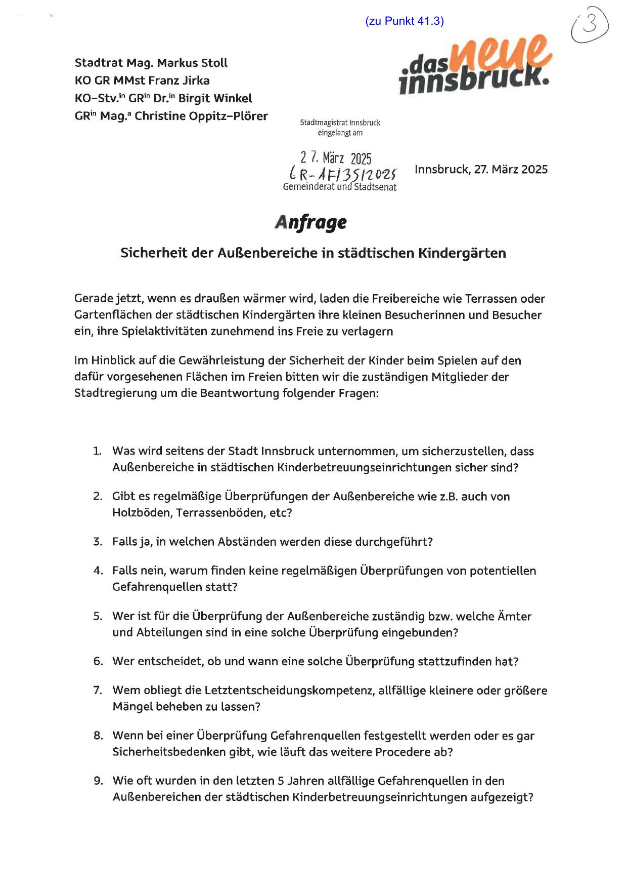 Was wird seitens der Stadt Innsbruck unternommen, um sicherzustellen, dass
