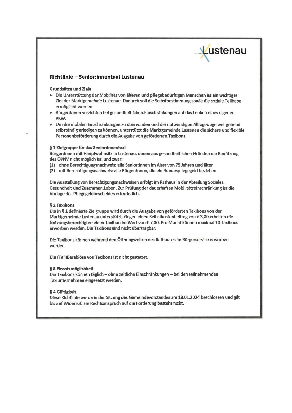 Bürger:innen mit Hauptwohnsitz in Lustenau, denen aus gesundheitlichen Gründen die Benützung