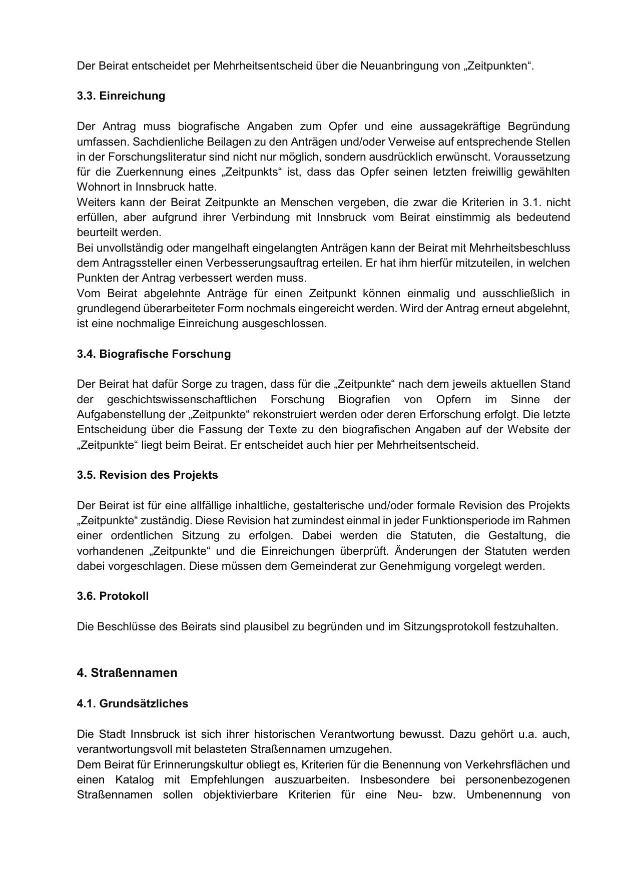 Der Beirat entscheidet per Mehrheitsentscheid über die Neuanbringung von „Zeitpunkten“.