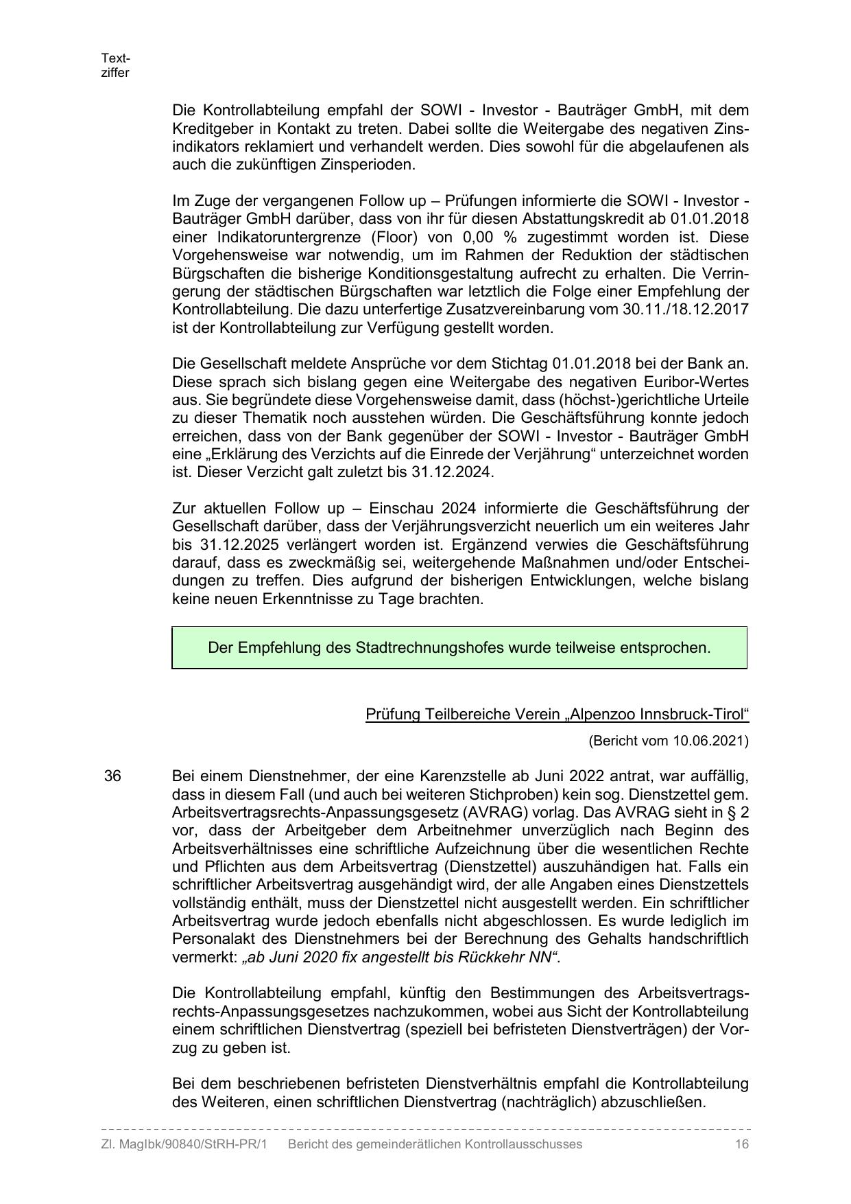 Der Empfehlung des Stadtrechnungshofes wurde teilweise entsprochen.