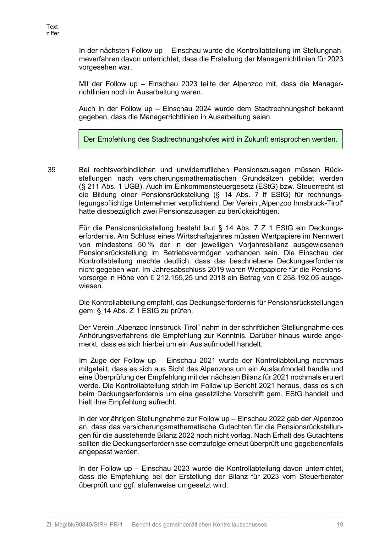 die Bildung einer Pensionsrückstellung (§ 14 Abs. 7 ff EStG) für rechnungslegungspflichtige Unternehmer verpflichtend. Der Verein „Alpenzoo Innsbruck-Tirol“