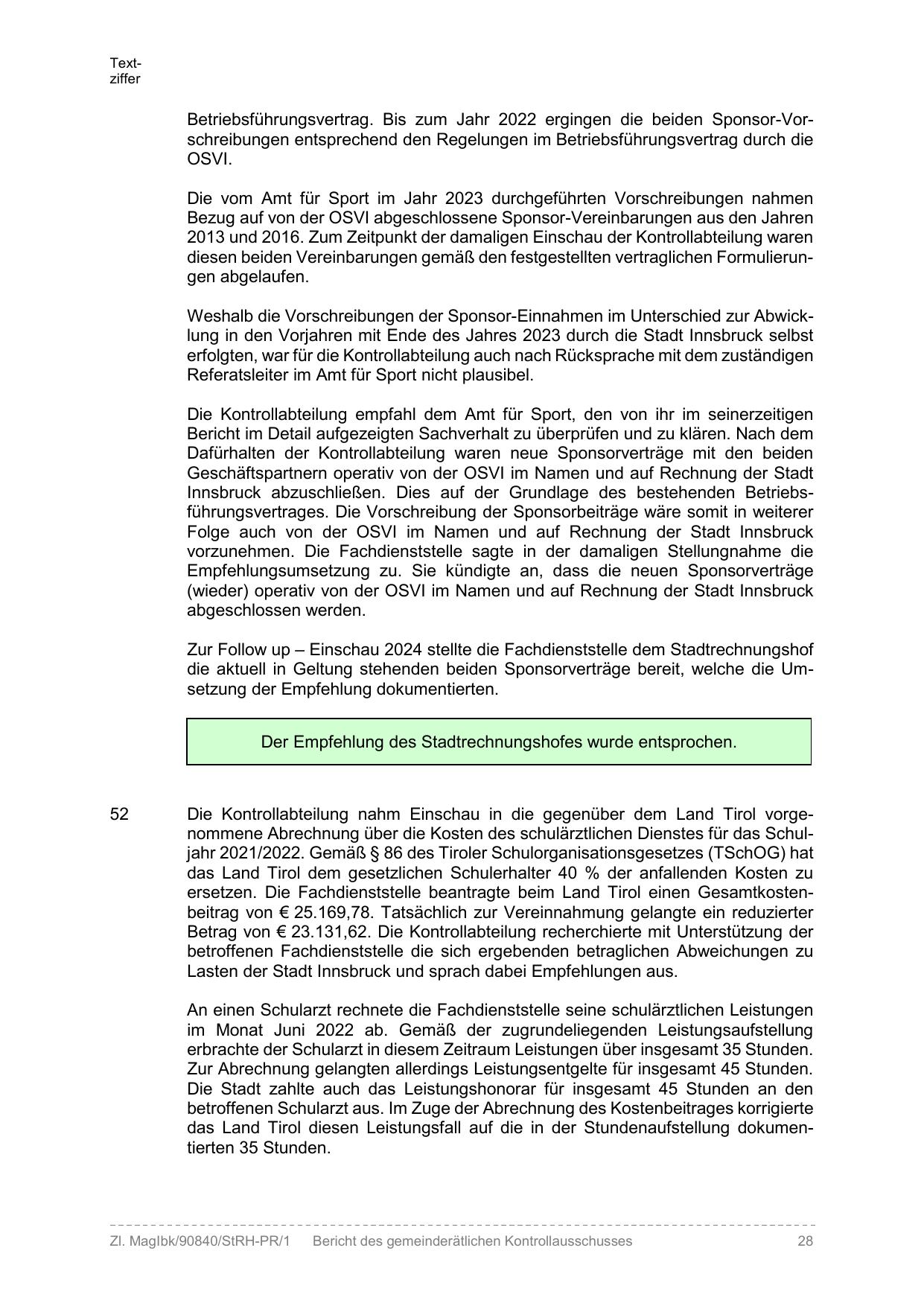 Lasten der Stadt Innsbruck und sprach dabei Empfehlungen aus.