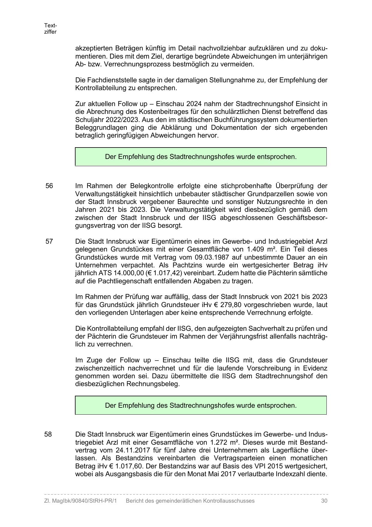 Zur aktuellen Follow up – Einschau 2024 nahm der Stadtrechnungshof Einsicht in