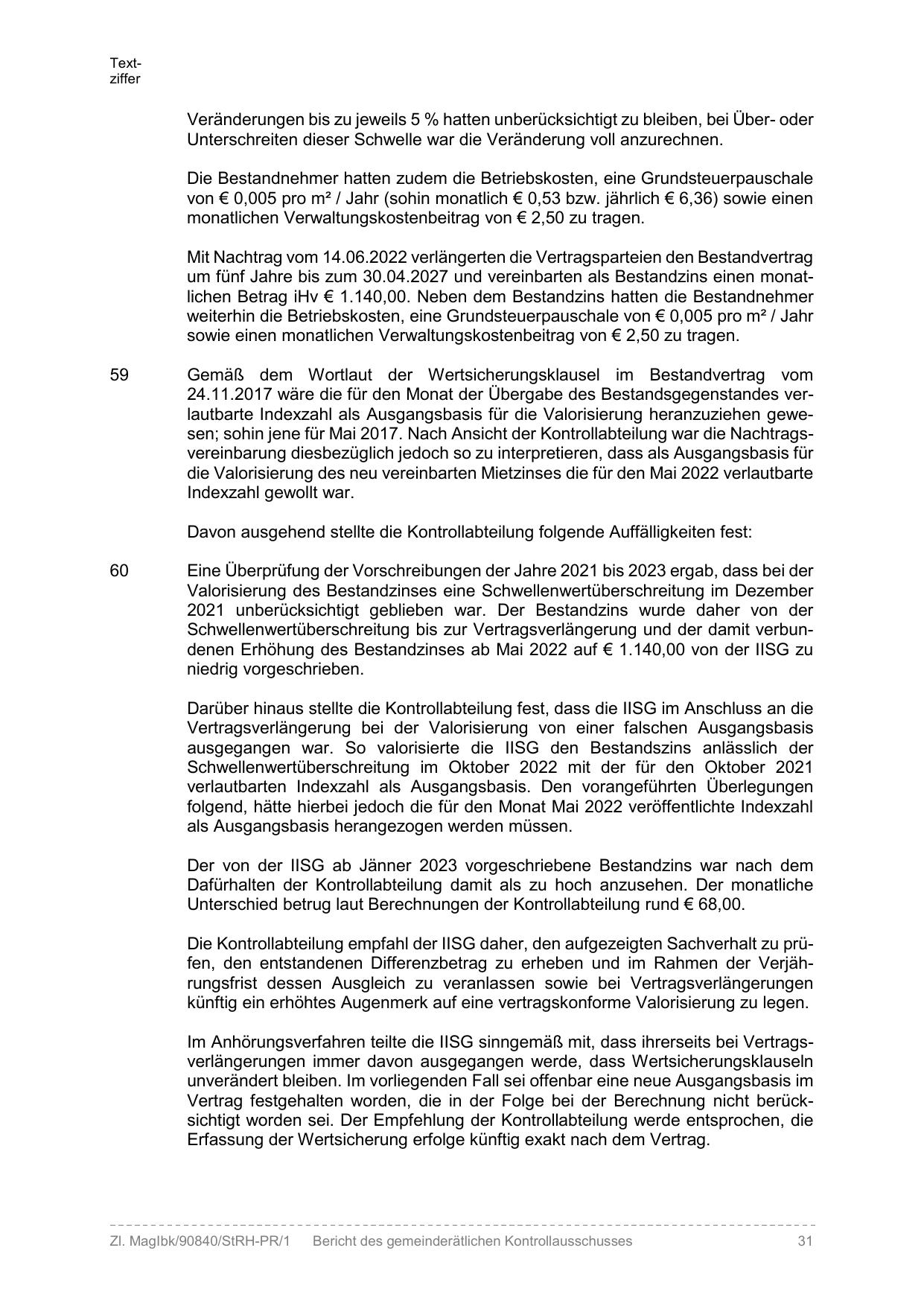 Im Anhörungsverfahren teilte die IISG sinngemäß mit, dass ihrerseits bei Vertragsverlängerungen immer davon ausgegangen werde, dass Wertsicherungsklauseln
