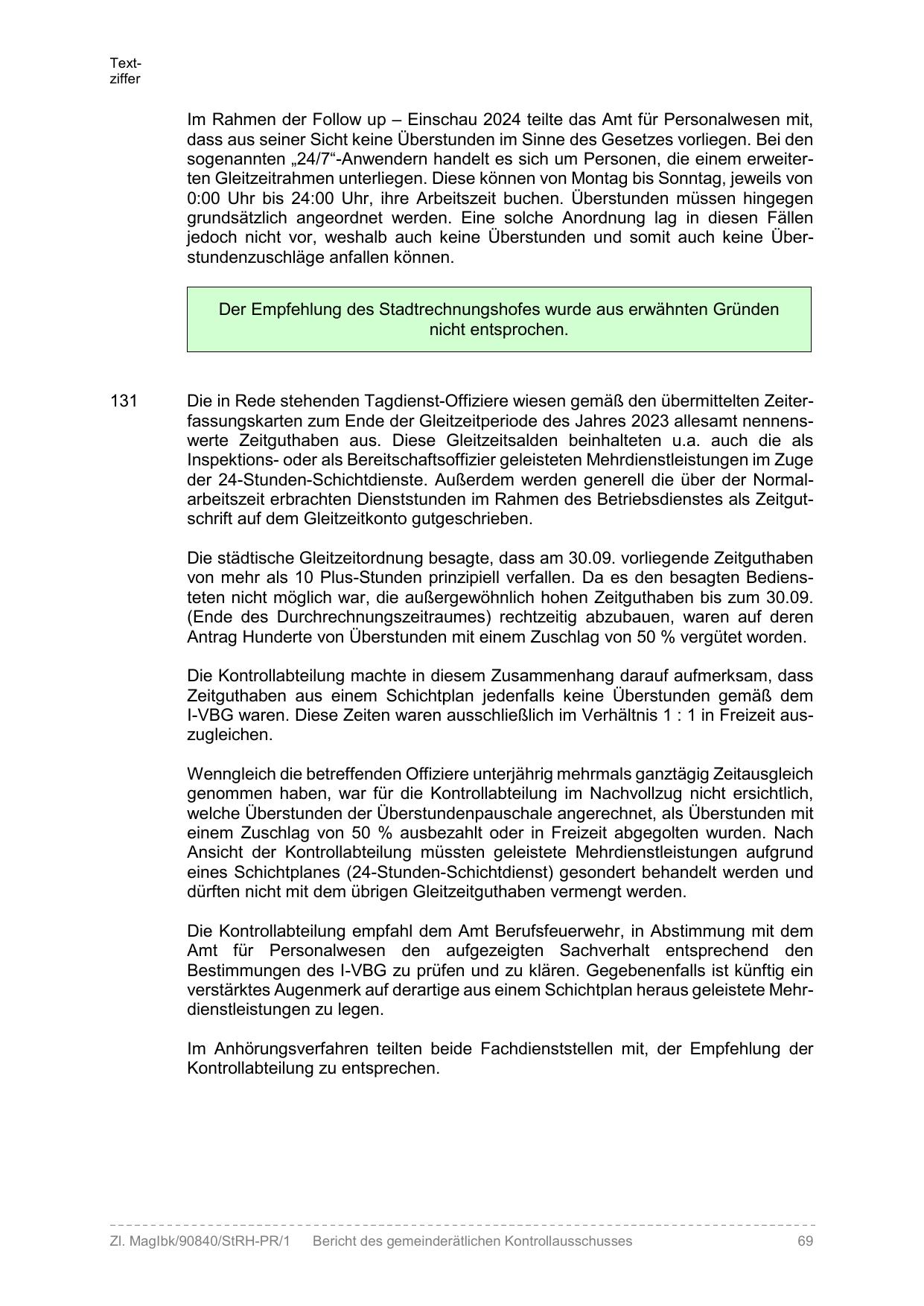 Der Empfehlung des Stadtrechnungshofes wurde aus erwähnten Gründen
