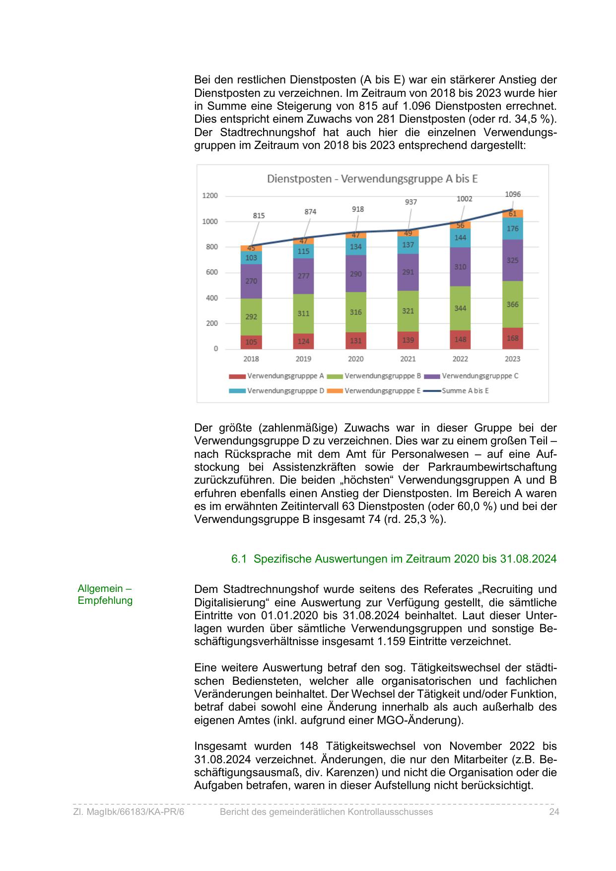 Eintritte von 01.01.2020 bis 31.08.2024 beinhaltet. Laut dieser Unterlagen wurden über sämtliche Verwendungsgruppen und sonstige Beschäftigungsverhältnisse insgesamt 1.159 Eintritte verzeichnet.