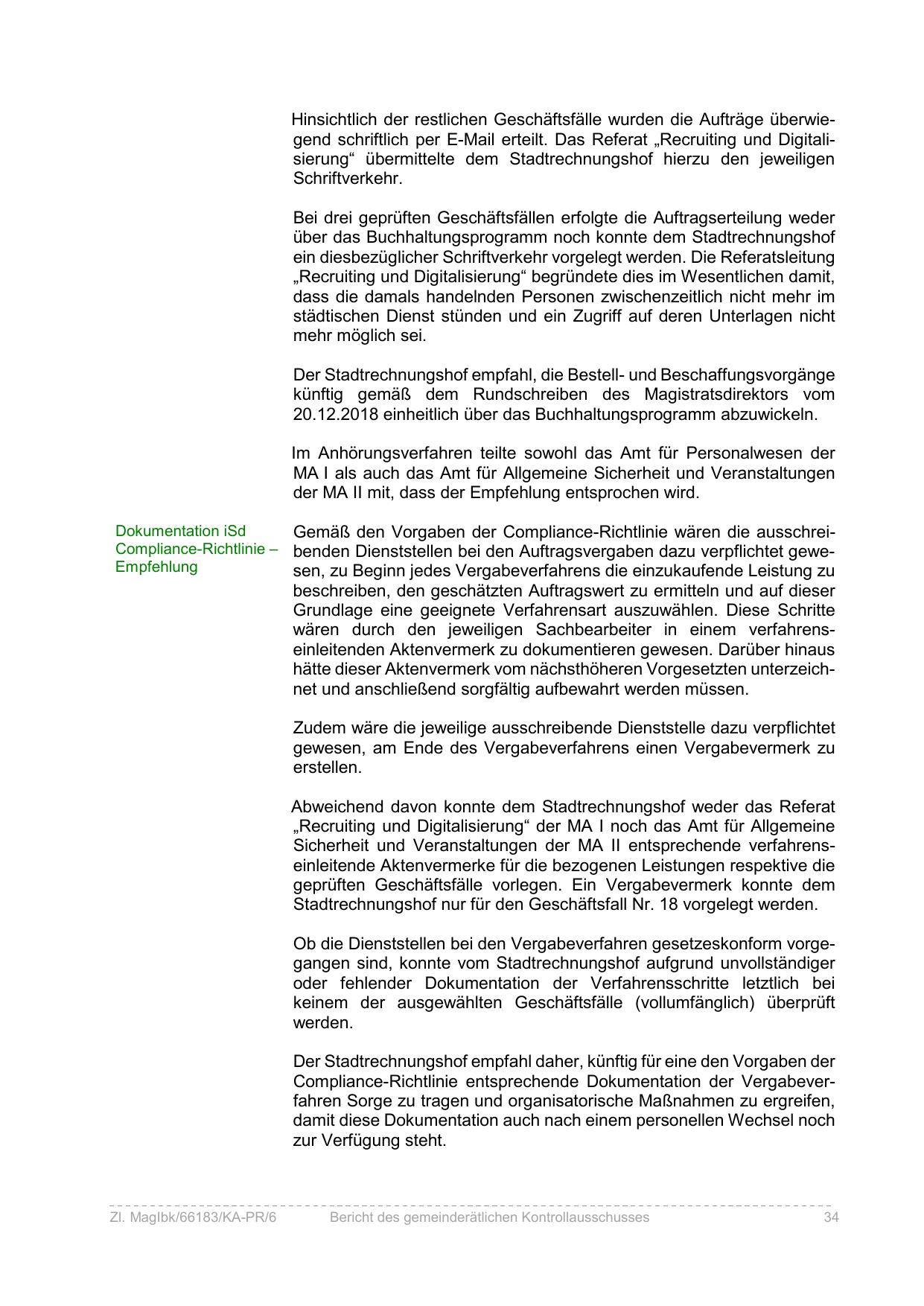 Stadtrechnungshof nur für den Geschäftsfall Nr. 18 vorgelegt werden.