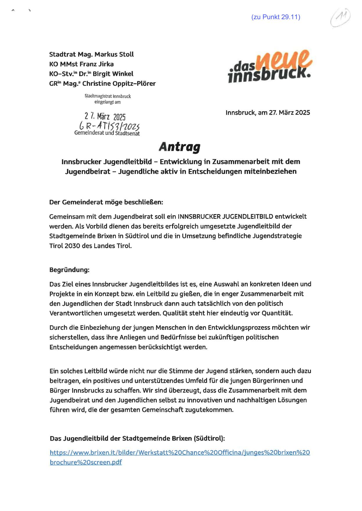 den Jugendlichen der Stadt Innsbruck dann auch tatsächlich von den politisch