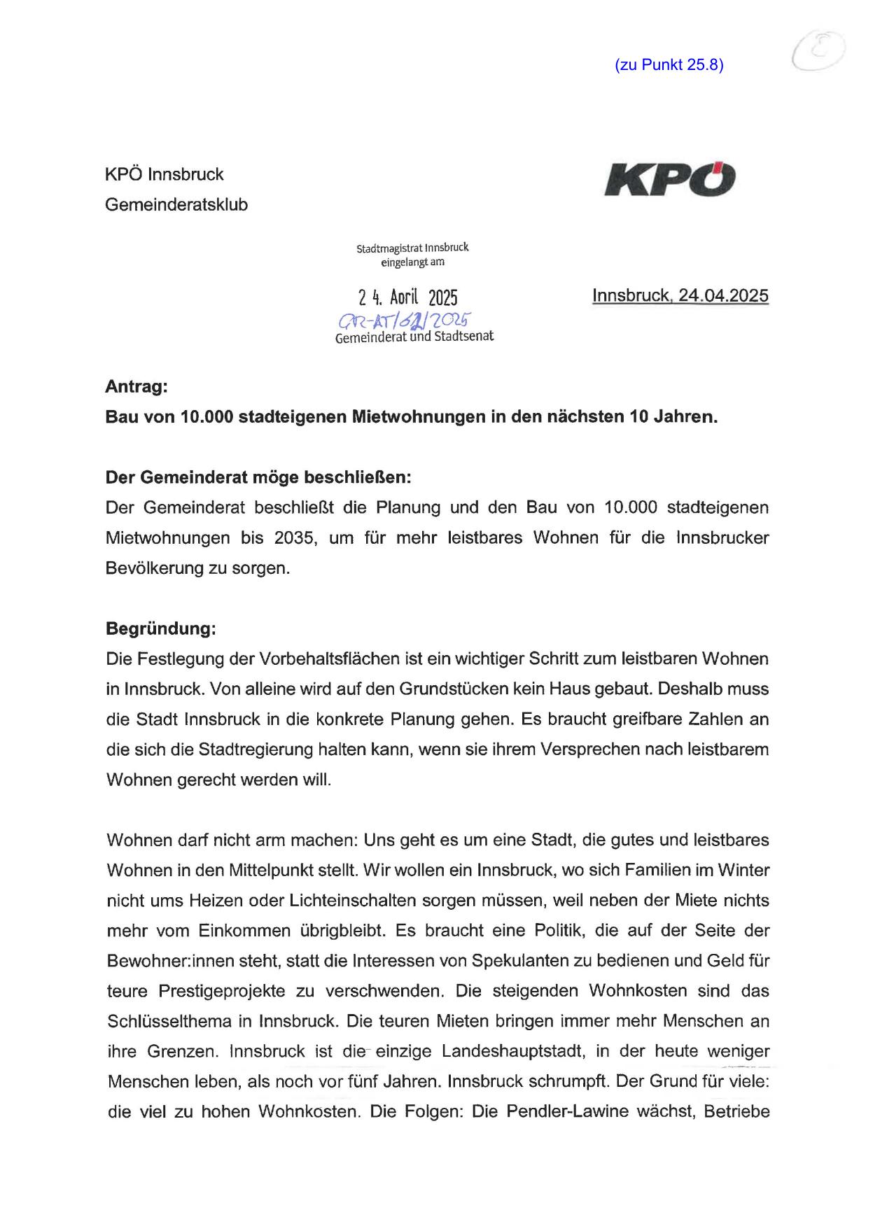 Mietwohnungen bis 2035, um für mehr leistbares Wohnen für die Innsbrucker