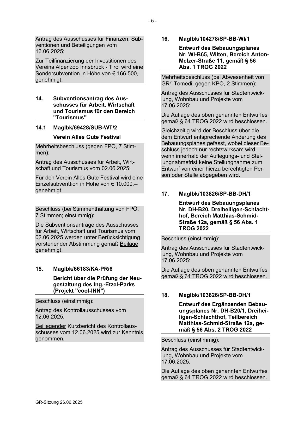 gemäß § 64 TROG 2022 wird beschlossen.