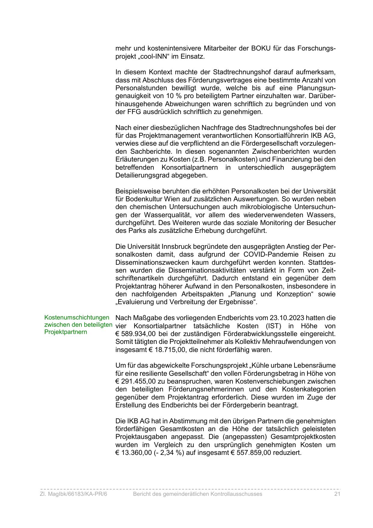 Kostenumschichtungen Nach Maßgabe des vorliegenden Endberichts vom 23.10.2023 hatten die